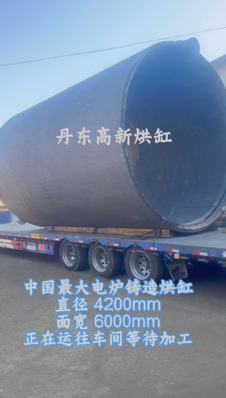 | 中國最大電爐鑄造烘缸直徑4200mm面寬6000mm正在運往車間等待加工 |